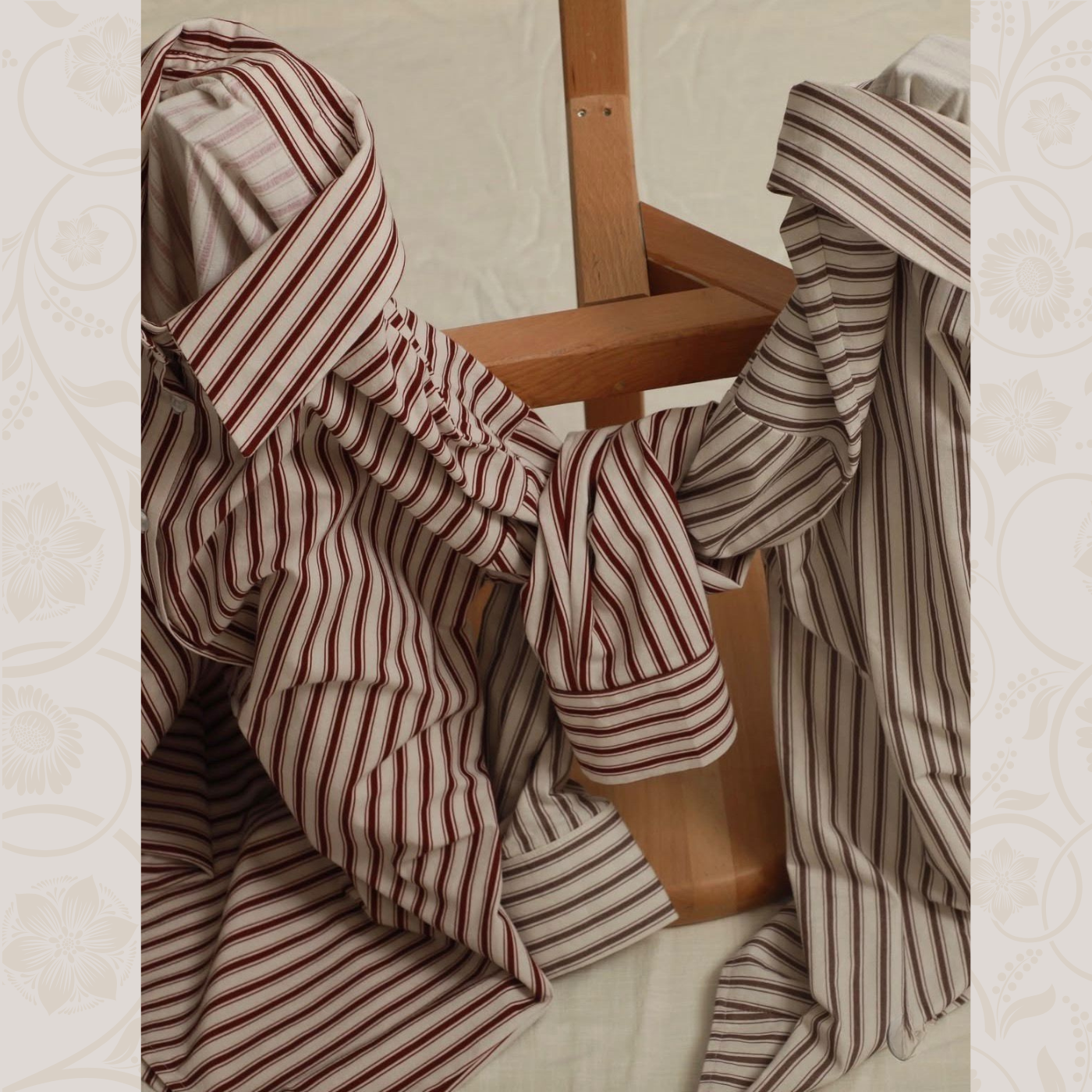 Um die Qualität, Eleganz und Langlebigkeit unserer Designs zu bewahren, empfehlen wir eine schonende Pflege. Bitte waschen Sie das Kleidungsstück bei niedriger Temperatur und verwenden Sie ein mildes Waschmittel. Der Trockner wird nicht empfohlen, da er die Stoffstruktur und Passform beeinträchtigen kann. Für ein optimales Ergebnis an der Luft trocknen und bei niedriger Temperatur bügeln.